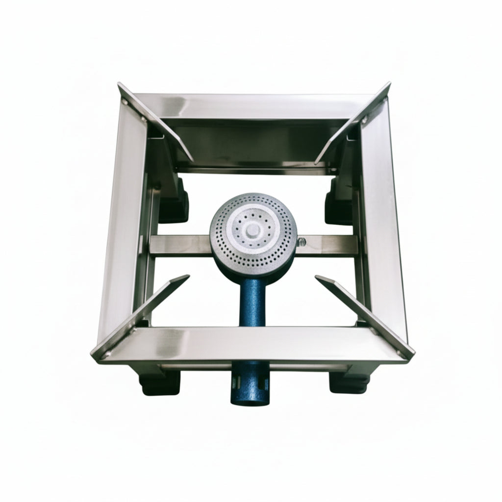 This heavy-duty single burner gas stove is designed for commercial kitchens as well as home use. Built with a strong stainless steel body and a high-efficiency iron burner, it delivers powerful and uniform heat for fast cooking.